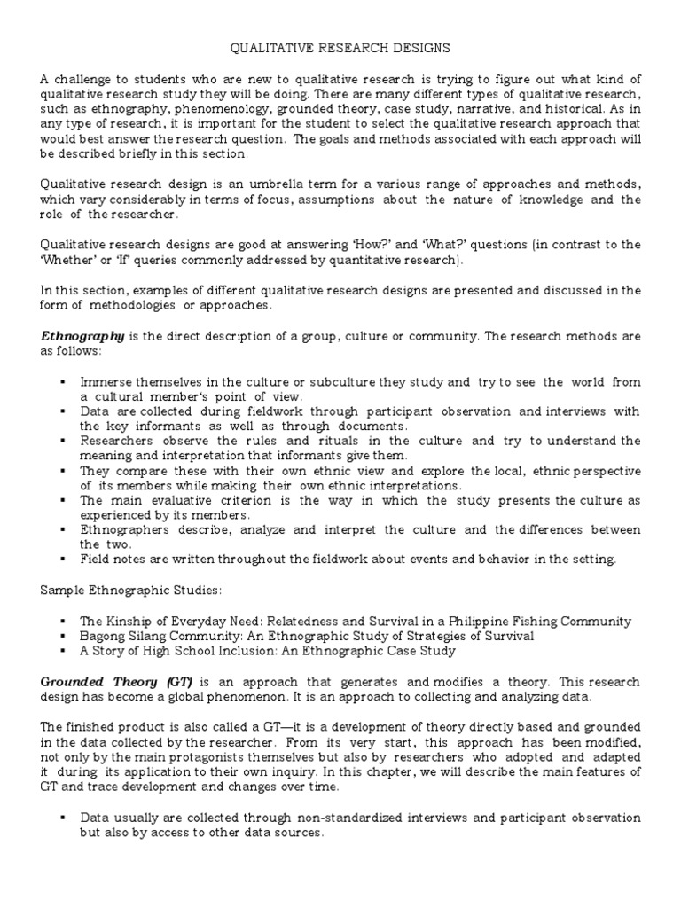 Qualitative Research Designs Pdf Narrative Qualitative Research